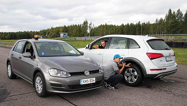 Испытания проводились в течение одной недели на шинном полигоне на юго-западе Финляндии. Агрегатоноситель – полноприводный кроссовер Audi Q5 с турбодизелем 2.0 TDI мощностью 177 сил и моментом в 380 Нм. Коробка – роботизированная, 7-ступенчатая. Также при проведении тестов на аквапланирование мы используем переднеприводный VW Transporter, так как ни на задне-, ни на полноприводном автомобиле эффективно провести эту дисциплину не представляется возможным.