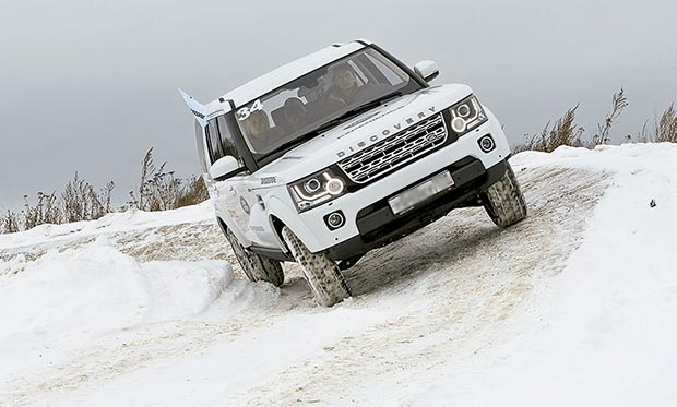Другие дисциплины были не столь показательными: преодоление крутых фронтальных и боковых бетонных склонов мало отличалось от такой же процедуры, проводимой, скажем, при дождливой летней погоде: знай себе регулируй плавно скорость движения, а остальное Discovery 4 сделает за тебя. Кажется, вот-вот «диско» заскользит на 45-градусном подъеме и скатится, а он, чертяка, продолжает ползти. Та же ситуация и с боковыми 35-градусными уклонами, и с крутыми спусками, на которых активно помогает система спуска с горы, — везде «Ленд Ровер» чувствует себя как рыба в воде, за что отдельное спасибо продвинутой внедорожной системе Terrain Response.